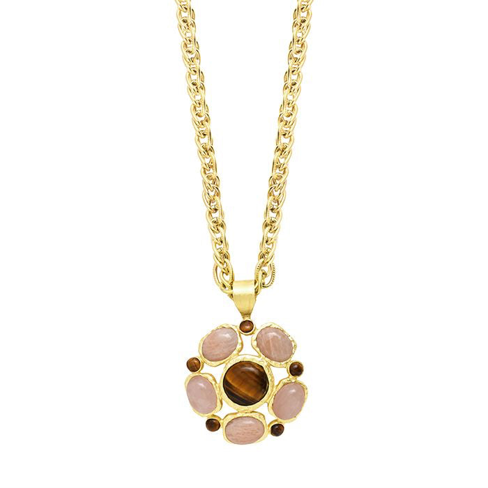 Sautoir multi-pierres quartz rose et oeil de tigre Tilleul