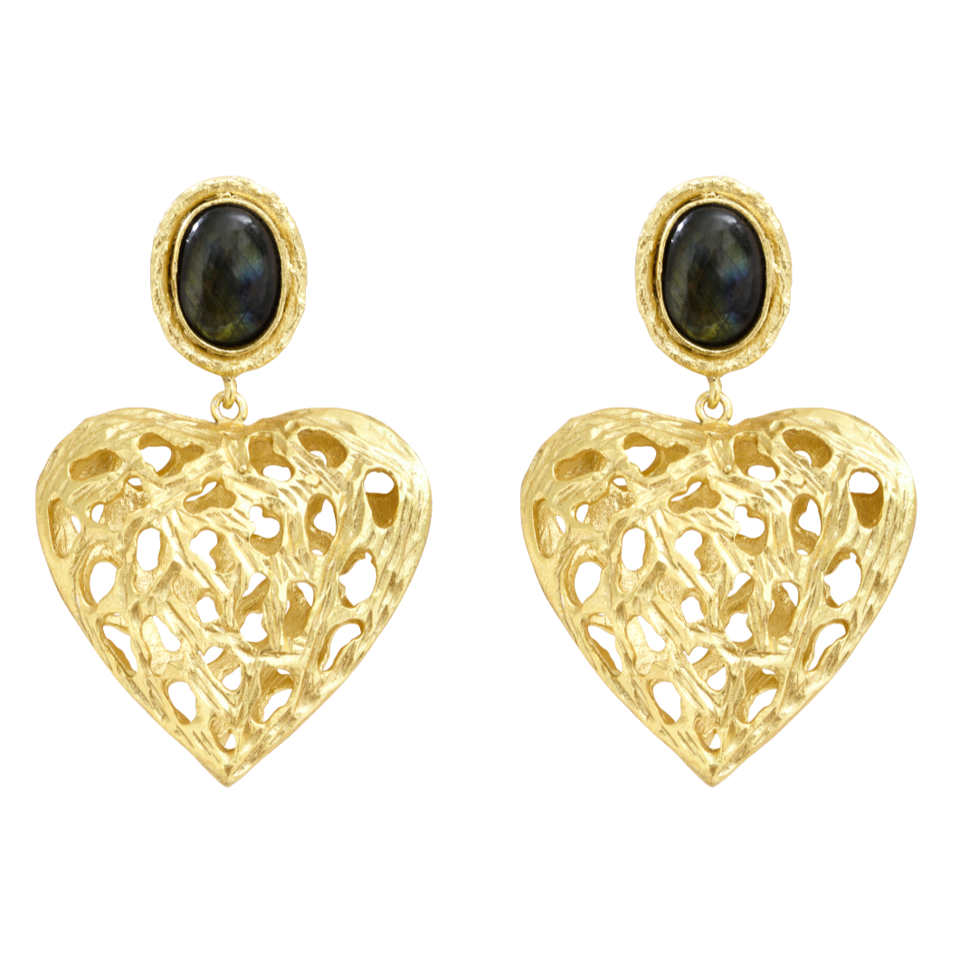 Boucles d'oreilles coeur dentelle labradorite Cèdre