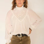 Versatility: Although primarily ecru, the HERMINE NATURAL blouse can be paired with a variety of accessories and garments, creating looks ranging from casual to dressy. It can be worn alone or under a blazer, making it suitable for a variety of occasions, whether for a casual outing or a more formal event.