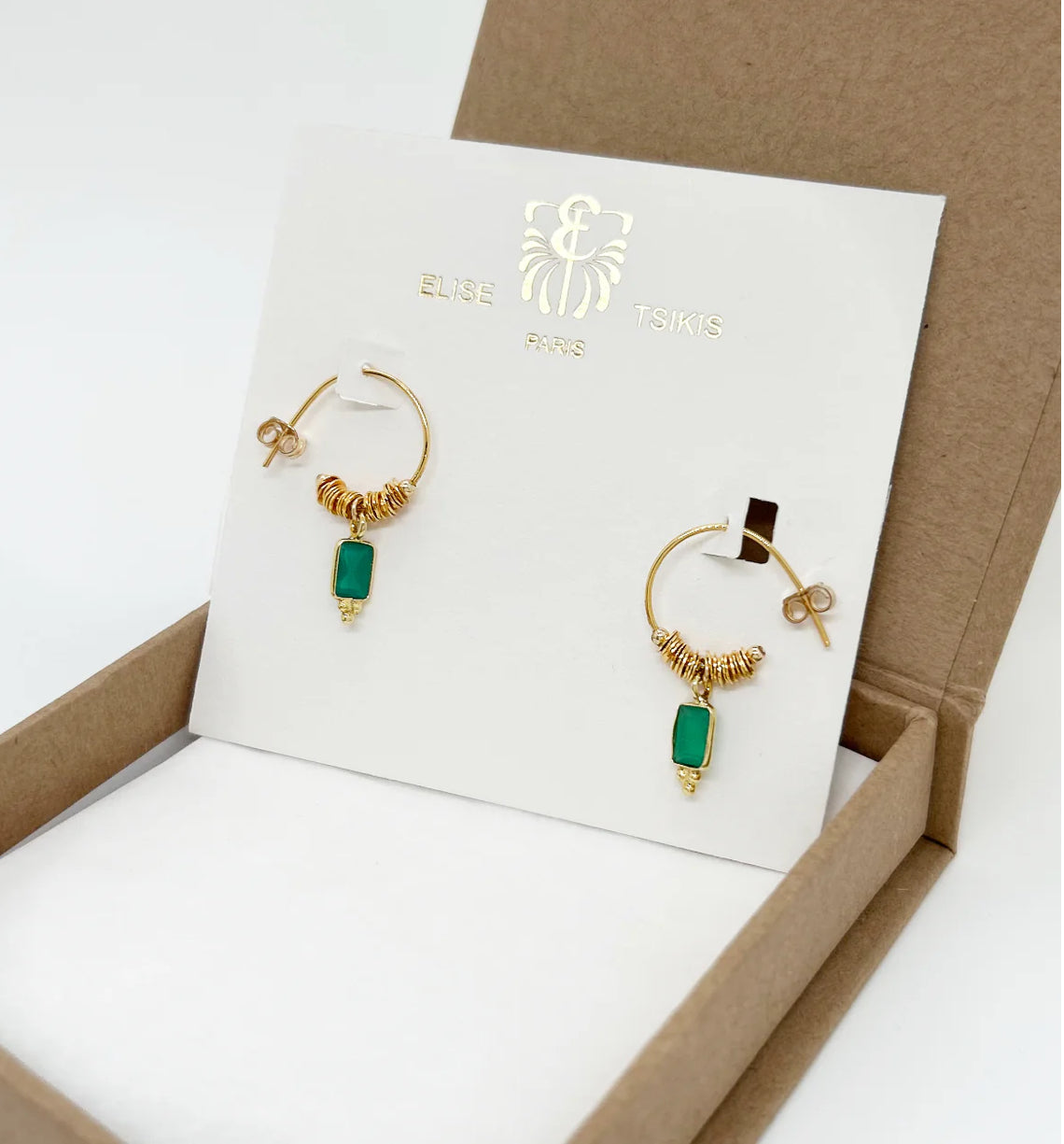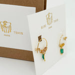 The earrings Lindale , made in Paris, plays on minimalist elegance with their natural, faceted stones. Mounted on a delicate ring, they bring a subtle and sophisticated touch of color to your style.