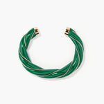 Twisted Diana bangle in emerald-colored resin, gilded with 750/1000 yellow gold.