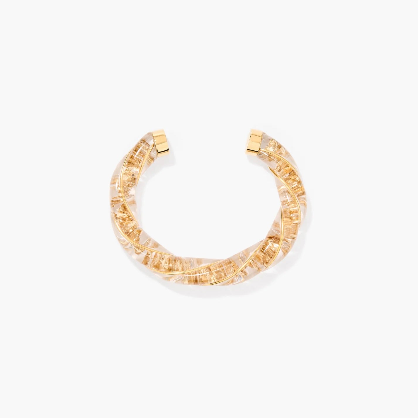 Twisted Diana bangle in transparent bakelite and golden leaves, gilded with 750/1000 yellow gold.