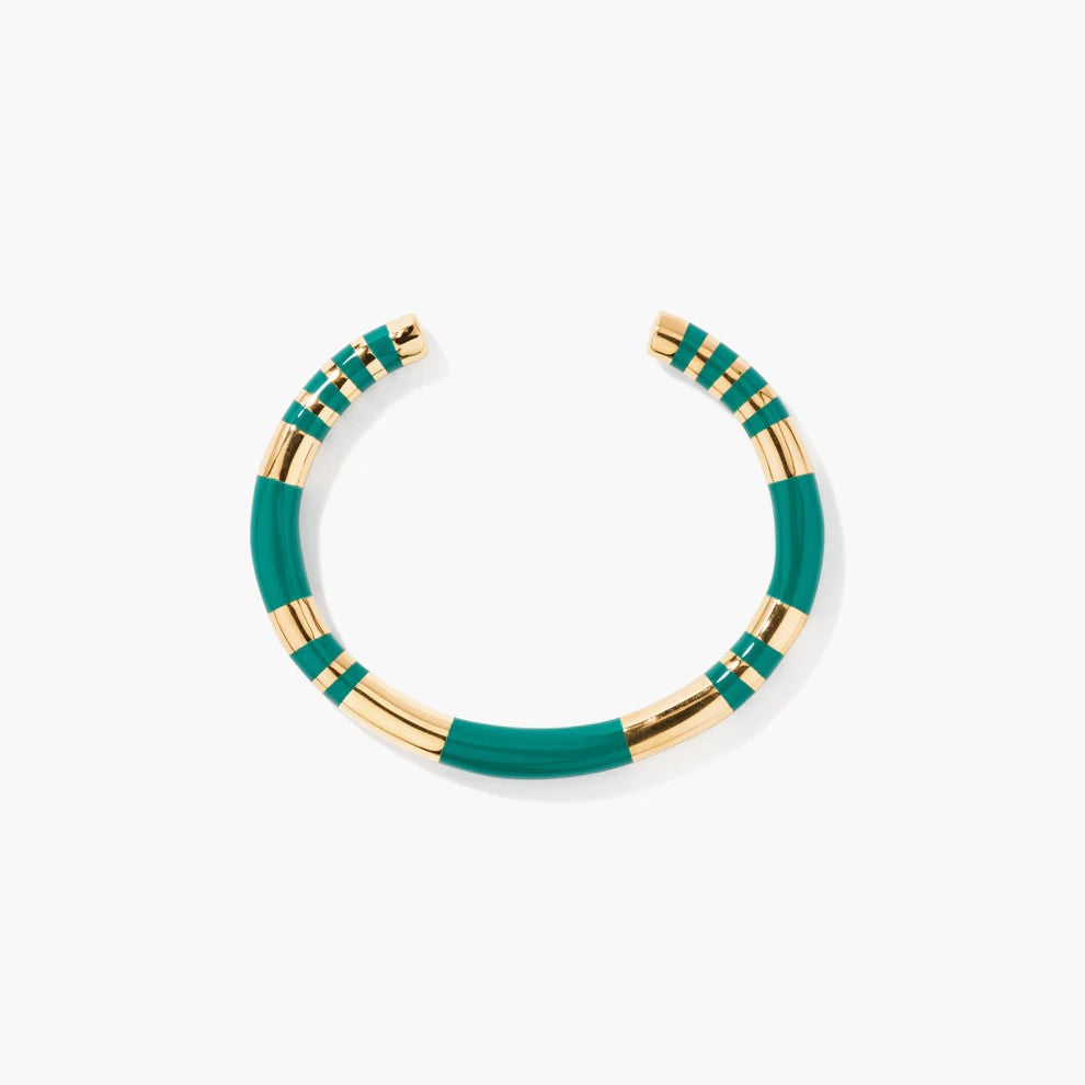 Positano bangle with emerald green stripes in resin and gilded with 750/1000 yellow gold.