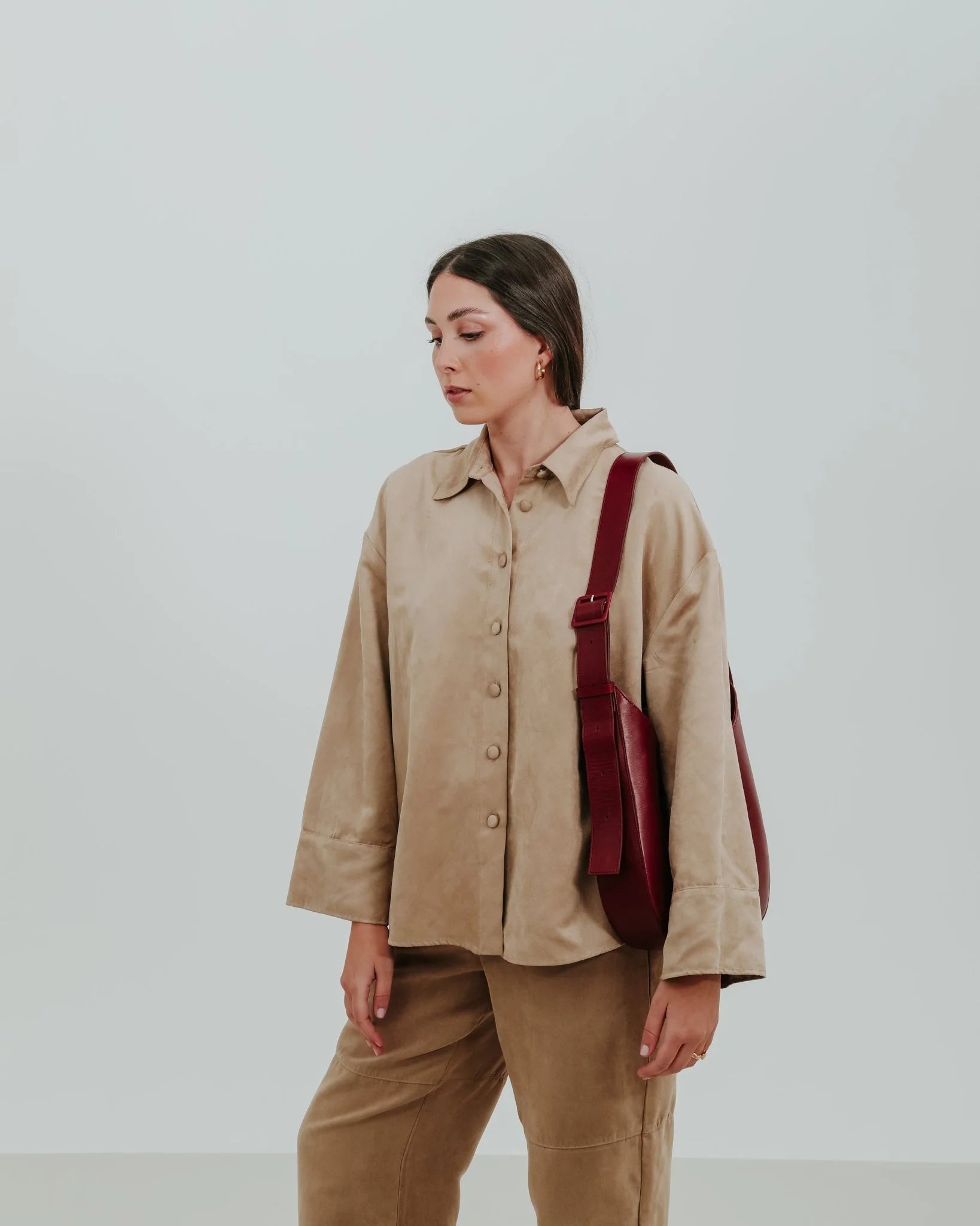 À l'intérieur, vous trouverez une pochette en tissu amovible fixée par des pinces à bouton, parfaite pour organiser vos essentiels. Le sac se ferme avec un fermoir magnétique caché, gardant tout en sécurité tout en conservant une silhouette propre et minimaliste.