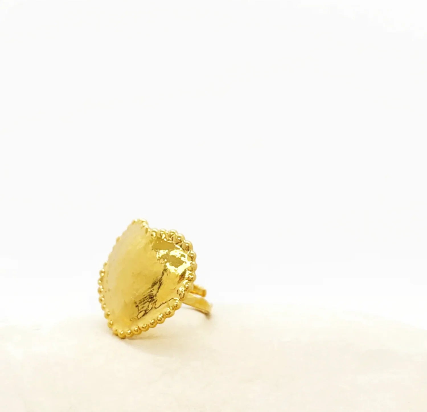 La bague Corella est une pièce réglable réalisée de façon artisanale en France. Terriblement romantique, avec son cœur texturé, cette pièce remarquable au style vintage saura s'adapter à tous les doigts. Un cadeau audacieux pour déclarer votre amour !