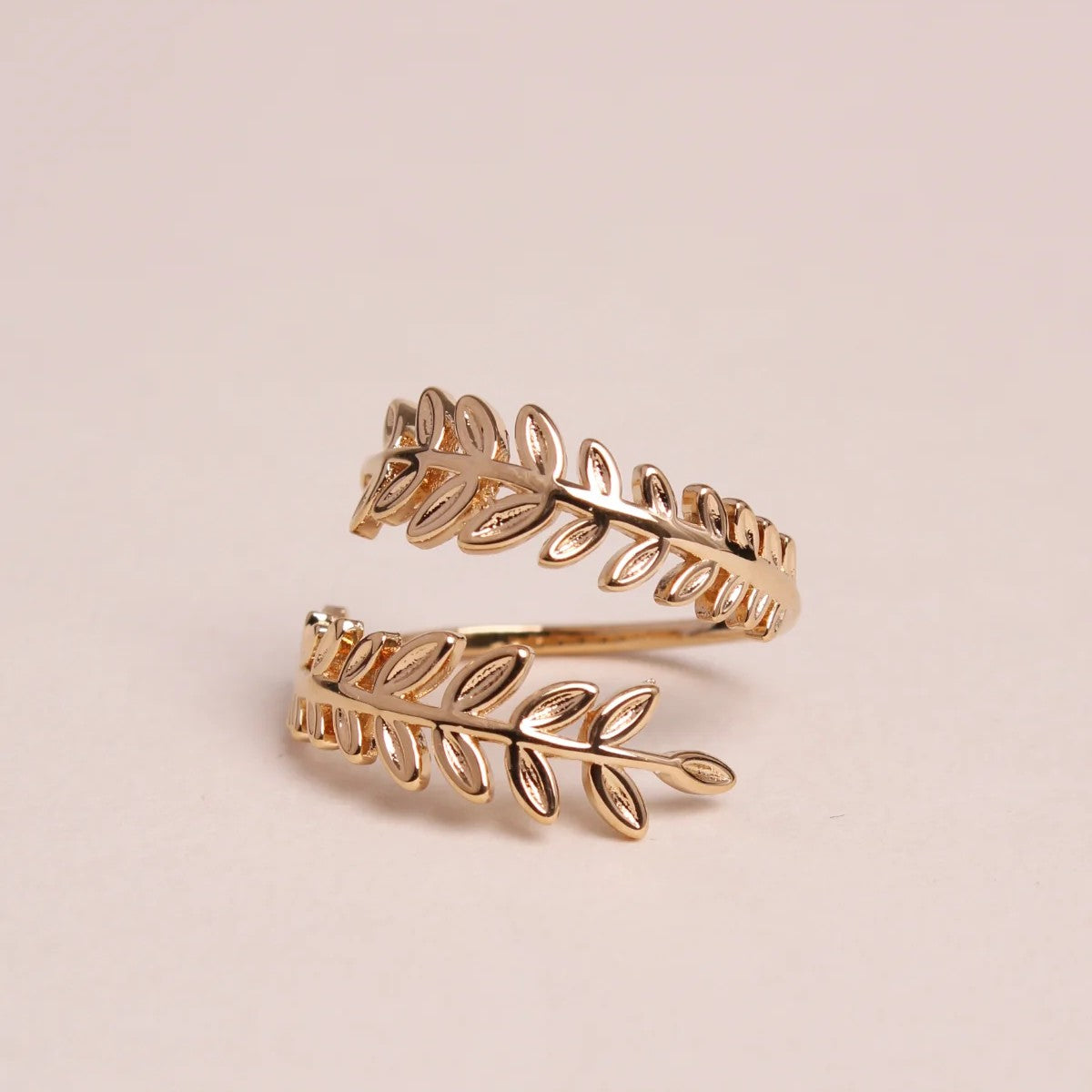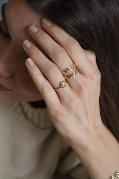 Habillez votre main avec notre Marisa. Elle sera parfaite pour habiller vos doigts au quotidien comme lors de vos soirées ! Bague réglable au motif feuille de laurier, en plaqué or 3 microns. Parfaite pour fleurir vos tenues hivernales !