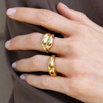 Notre bague Mélanie et sa finition lisse légèrement bombée pour un style vintage. Parfaite à offrir ou à s'offrir ! En plaqué or 3 microns.