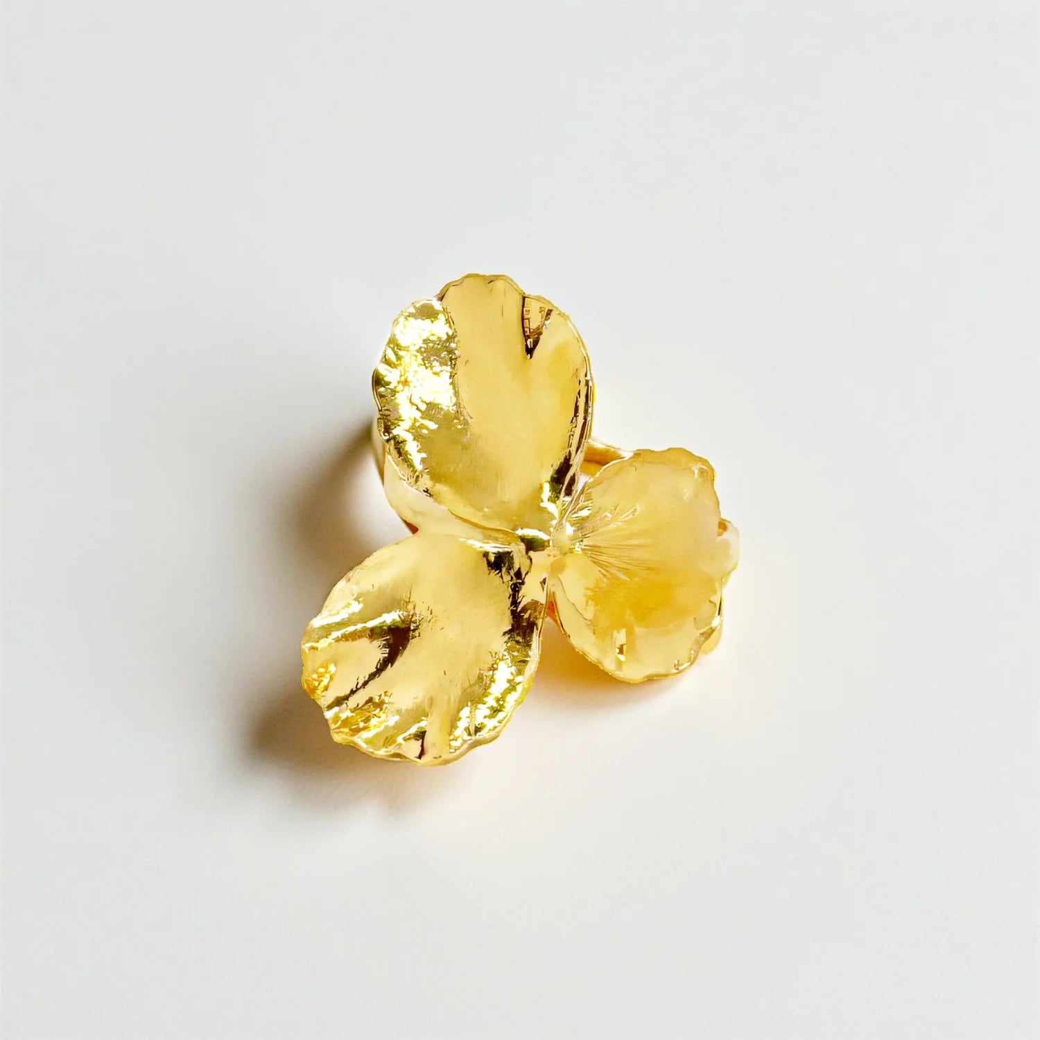 Fabriquée à la main en France, cette bague réglable prend la forme d'une fleur de Pensée. Un bijou iconique de notre maison.