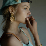 Bague Positano à rayures ivoire en résine et doré à l'or jaune 750/1000.