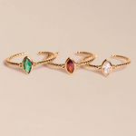 Découvrez le modèle Wilma à l'inspiration vintage avec son zircon ovale. Une bague fine réglable, parfaite à accumuler avec notre modèle Alma. En plaqué or 3 microns.