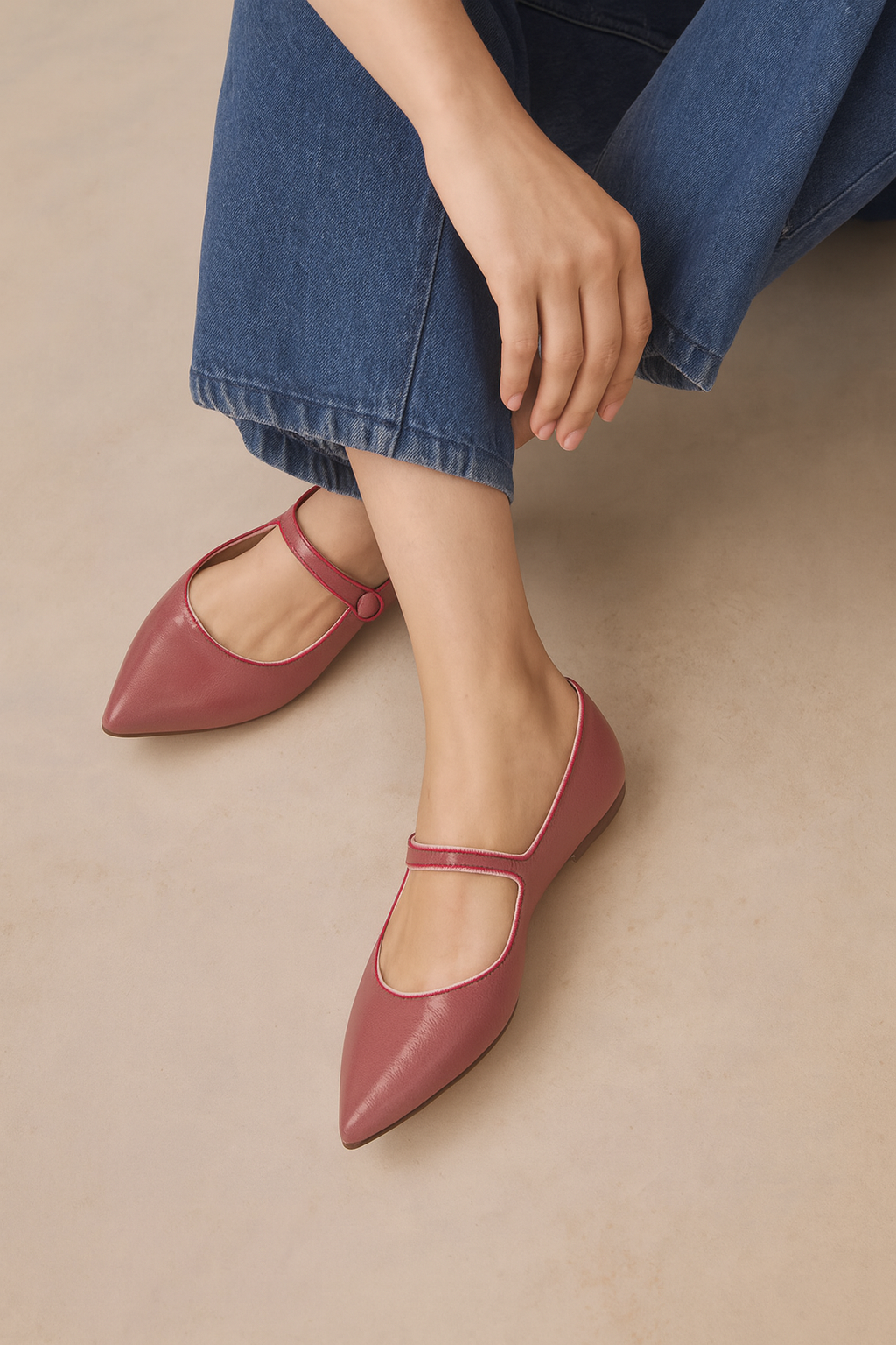 Confectionné en glitter et en cuir bovin. Bout pointu. Fermeture à l’aide d'une bride sur le cou-de-pied. Bouton enrobé en cuir de chèvre vernis et élastique sous le bouton pour faciliter l'enfilage. Doublure en cuir bovin et semelle jourdain en cuir. Tige en glitter provenant d'Espagne. Fabriqué au Portugal dans le respect du savoir-faire traditionnel. Talon : 10 mm. Finition passepoil en gros grain ton sur ton avec le cuir de la tige.