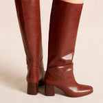 Notre botte numéro 109 a été pensée pour avoir la juste équation entre la cambrure parfaite et la hauteur idéale. Elle a la particularité d’avoir une découpe et des surpiqûres en forme de T qui confèrent un effet graphique au modèle. Sa tige tube - sans fermeture éclair - apporte du mouvement et un vrai confort.