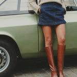 Hauteur genoux et inspirations seventies : notre numéro 109 se hisse en tête de liste parmi les indispensables du shoesing féminin. On adore son allure seventies grâce à son bout carré légèrement arrondi et son talon biseauté de 60 mm. Sa tige droite et souple et ses jeux de surpiqûres élancent la jambe et apportent une allure aussi graphique que glamour. A découvrir dans des tonalités chaudes qui s’ancrent dans cette décennie où la mode est libre et décomplexée.