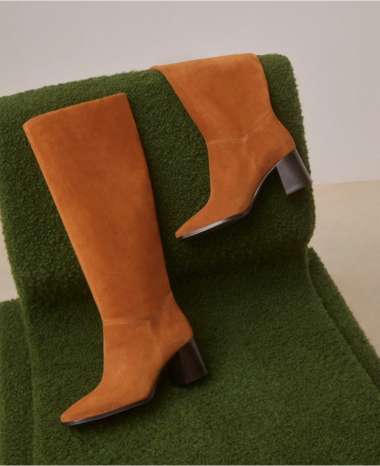 Hauteur genoux et inspirations seventies : notre numéro 109 se hisse en tête de liste parmi les indispensables du shoesing féminin. On adore son allure seventies grâce à son bout carré légèrement arrondi et son talon biseauté de 6 cm. Sa tige droite et souple et ses jeux de surpiqûres élancent la jambe et apportent une allure aussi graphique que glamour. A découvrir dans des tonalités chaudes qui s’ancrent dans cette décennie où la mode est libre et décomplexée.