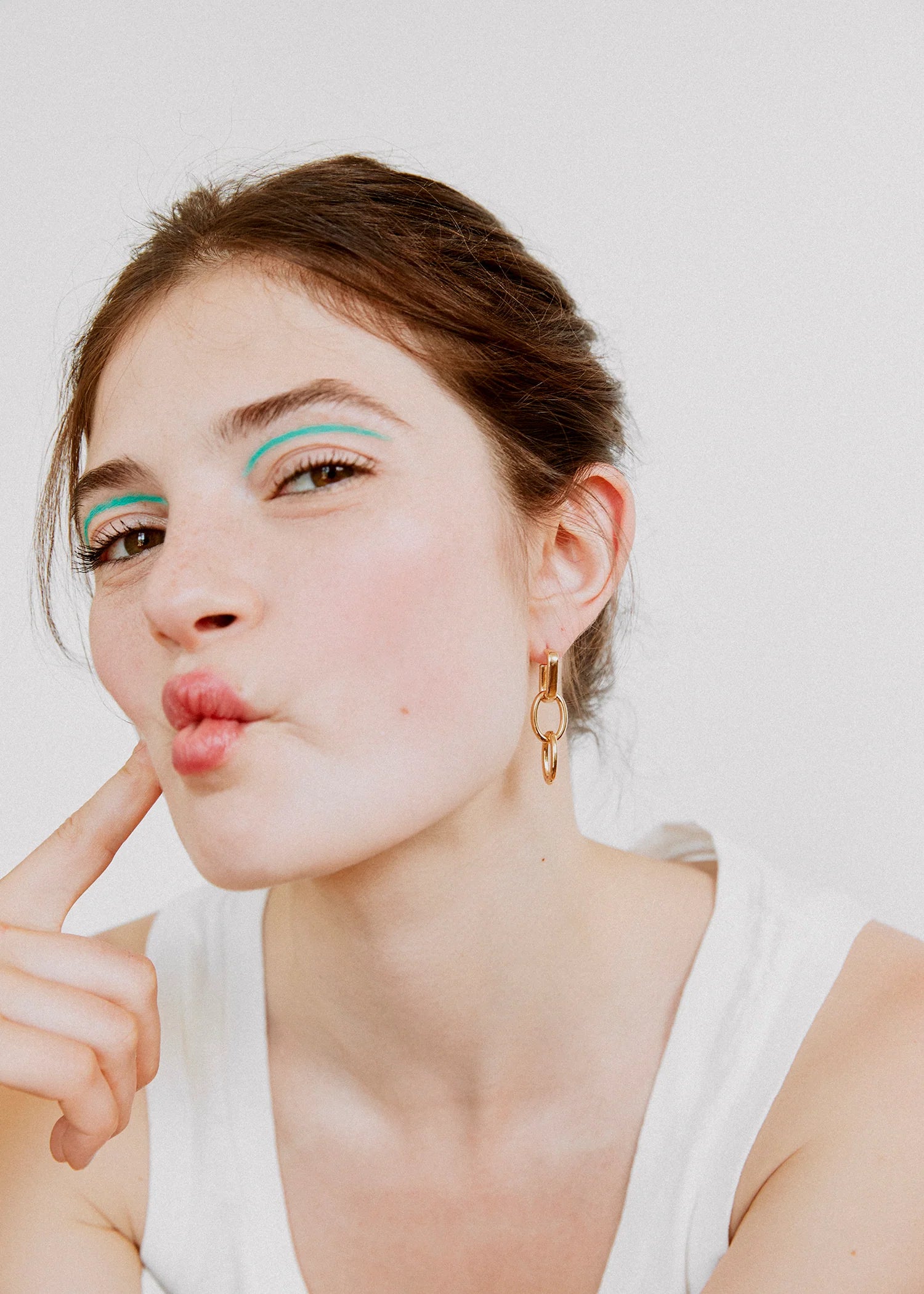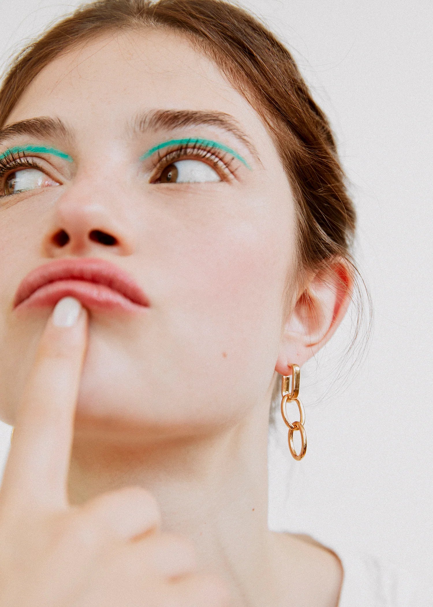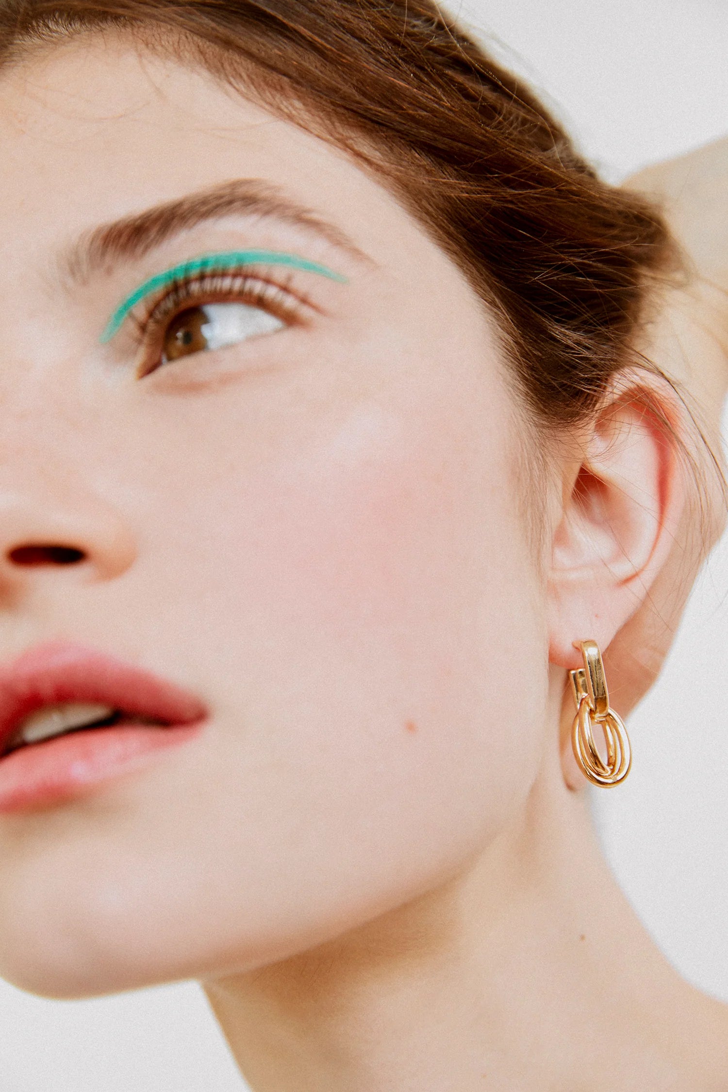 Créoles légèrement rectangulaires au design minimaliste permettant d'adapter au gré de vos envies une multitude de mailles et d'accessoires différents : ici la maille Billie. Une maille multi position.