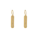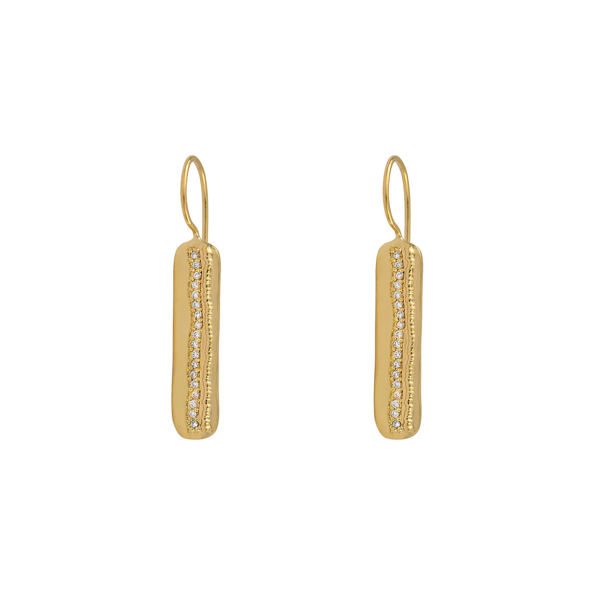 Boucles d'oreilles rectangulaires avec ses angles arrondis, pavées d’une ligne irrégulière de zircons blancs et de mini billes