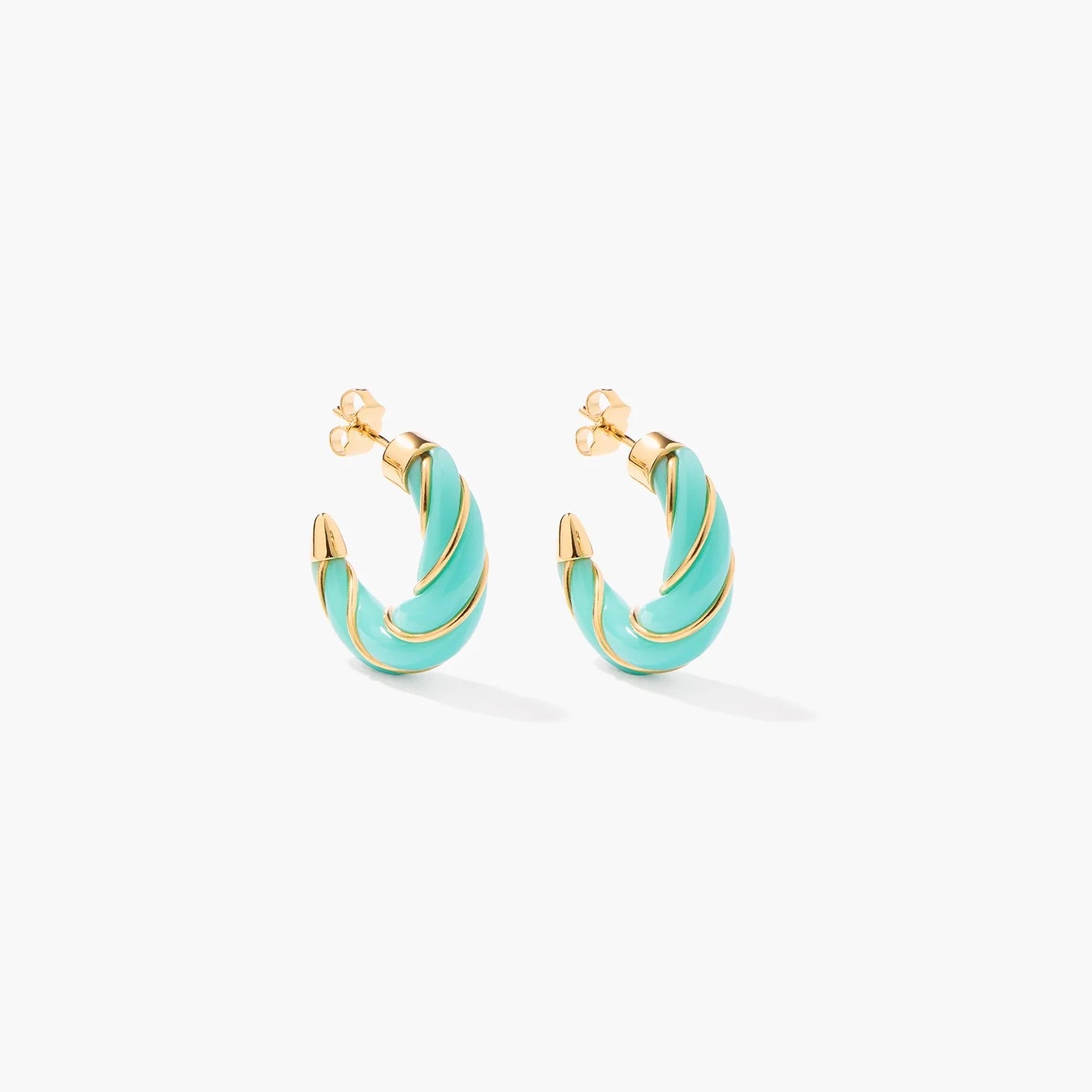 Boucles d'oreilles Diana torsadé en bakélite couleur aqua, dorées à l'or jaune 750/1000.