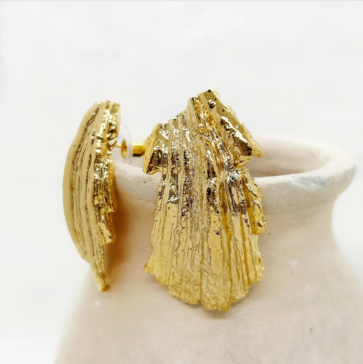 Fabriquées à Paris, les boucles d'oreilles Gaia, par leurs lignes imposantes et uniques en forme de coquillage, donneront un éclat flamboyant à vos tenues. Une pièce emblématique de notre maison.