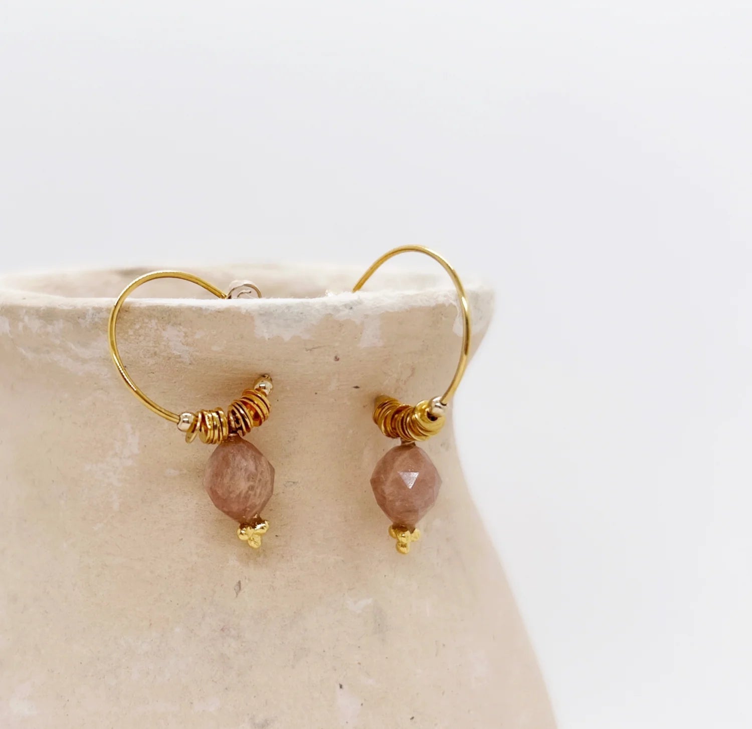 Réalisées dans notre atelier parisien, les petites créoles Mala habillées d'une pierre naturelle, sont un mélange de style élégant et ethnique.