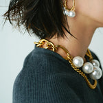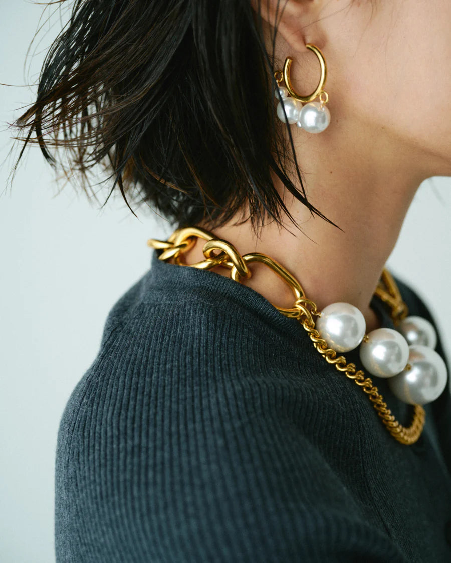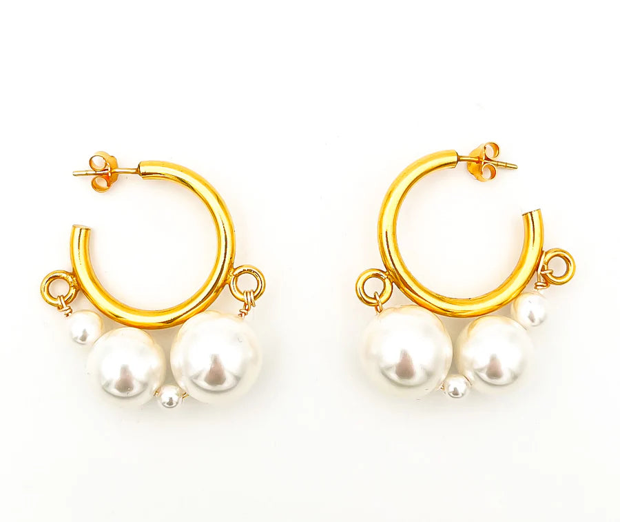 Boucles d’oreilles en laiton légèrement patiné et en perles de nacres.