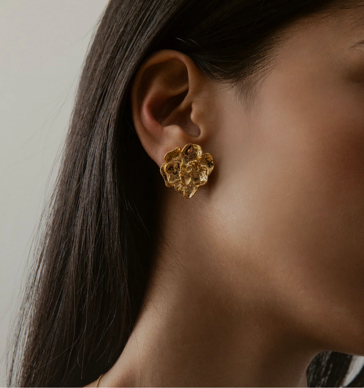 Fabriquées à Paris, les boucles d'oreilles Sarah aux lignes poétiques, représentant une fleur tout droit sortie de l'imagination de la créatrice, apporteront de la douceur à votre visage.