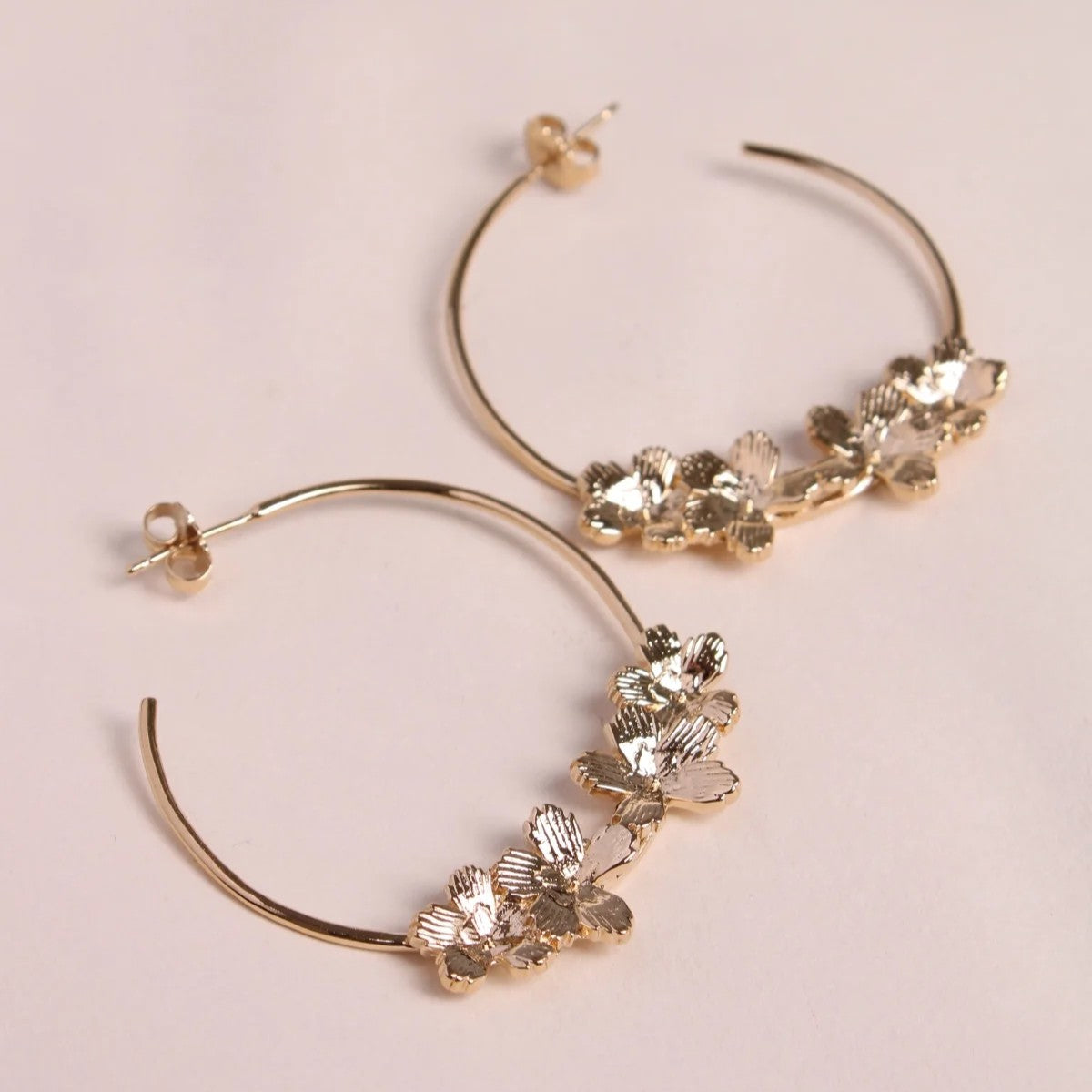 Parfaite pour un look élégant ou une cérémonie, nos grandes boucles Siena. 4 fleurs en relief déposées sur une créole légère.