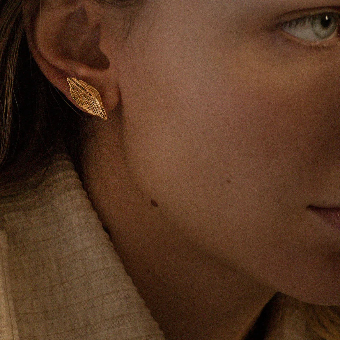 Réalisées de façon artisanale en France, ces puces d'oreilles donne l'illusion d'une feuille légère et délicate, tout droit sorti d'un jardin lumineux.