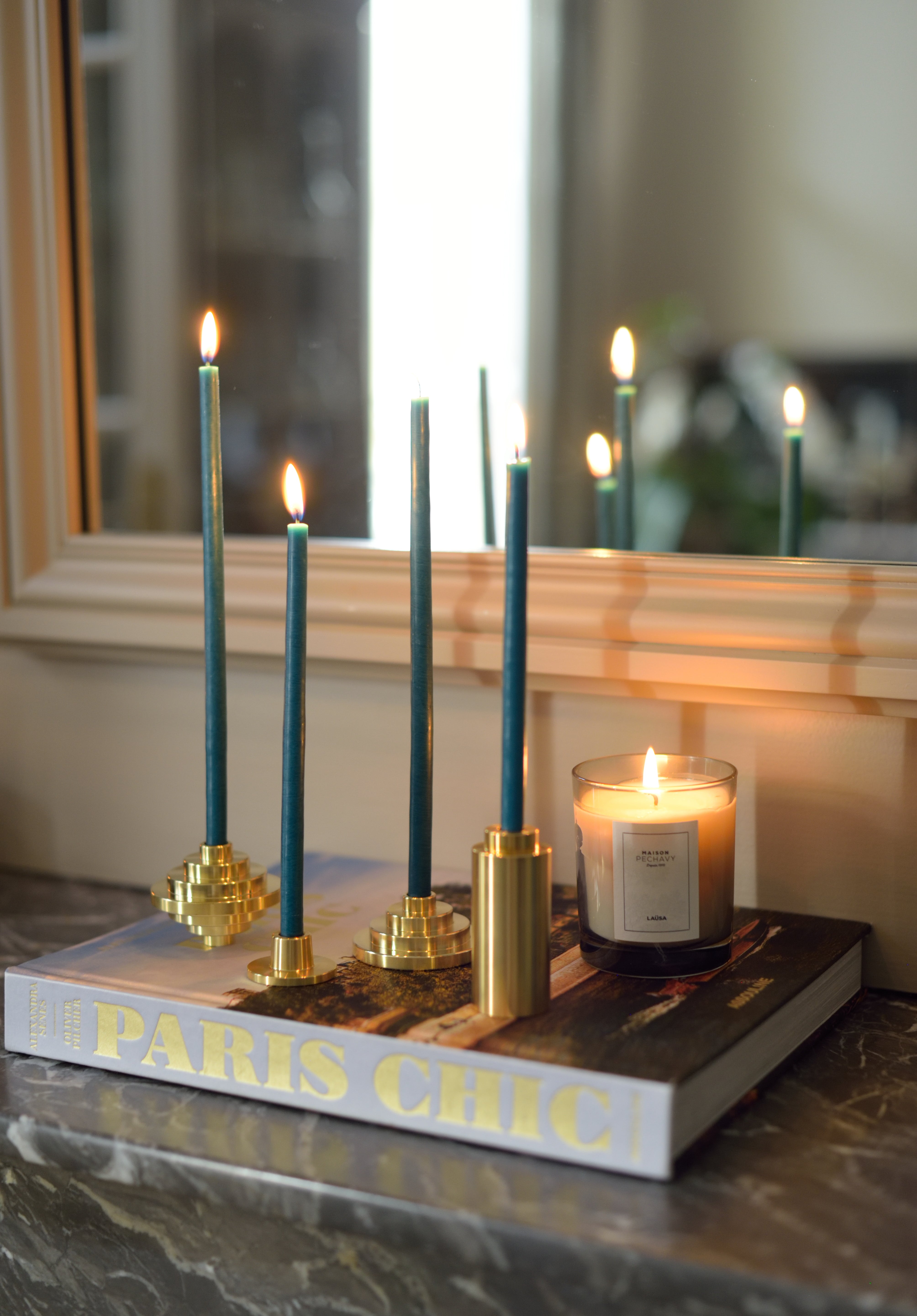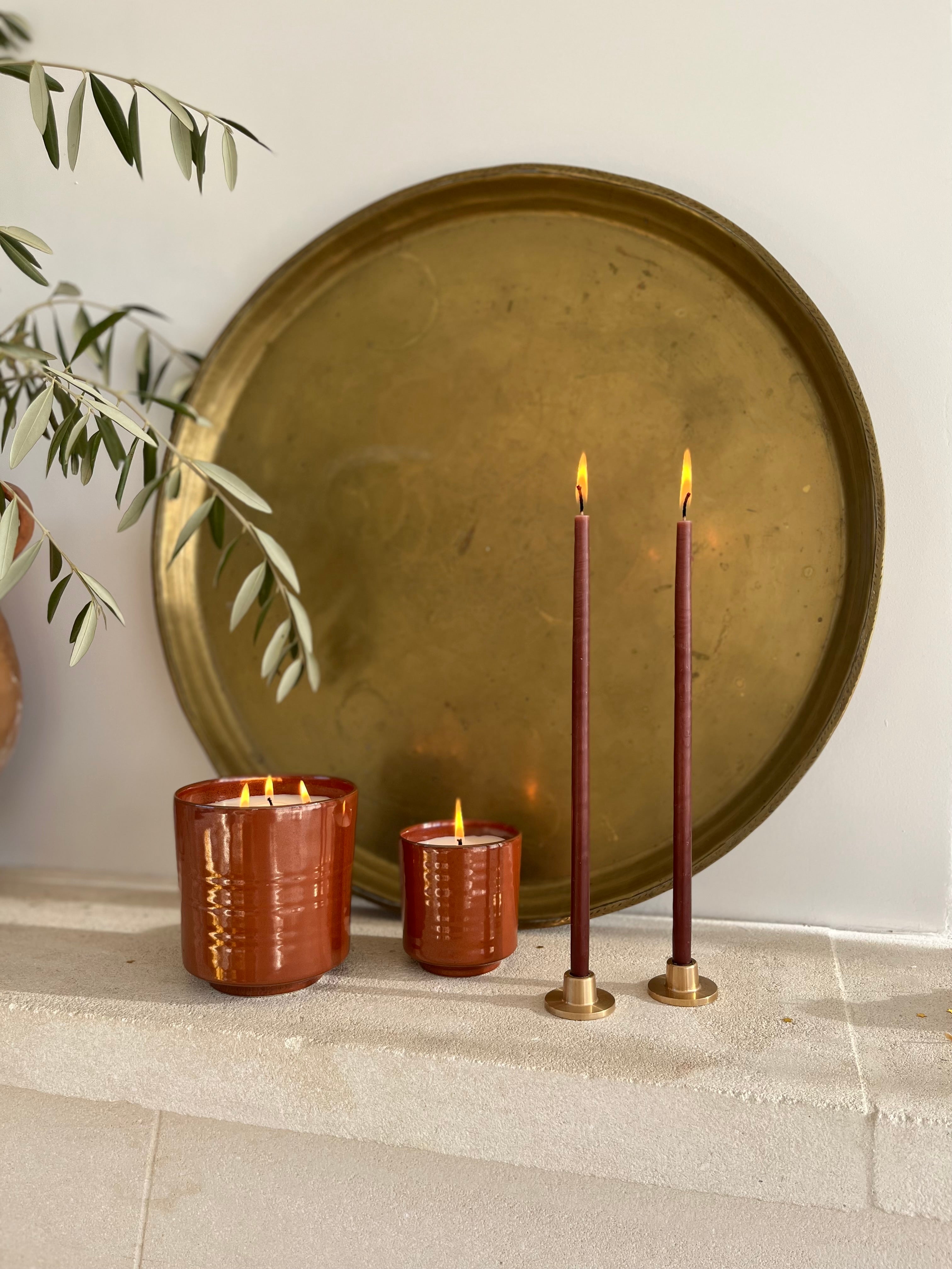 Le laiton, matière noble et durable dans le temps, est également très lumineux. Il saura magnifier les bougies colorées. Le laiton se patine avec le temps, un nettoyage régulier à l'aide d'un produit adapté sera nécessaire afin de conserver tout l'éclat initial.