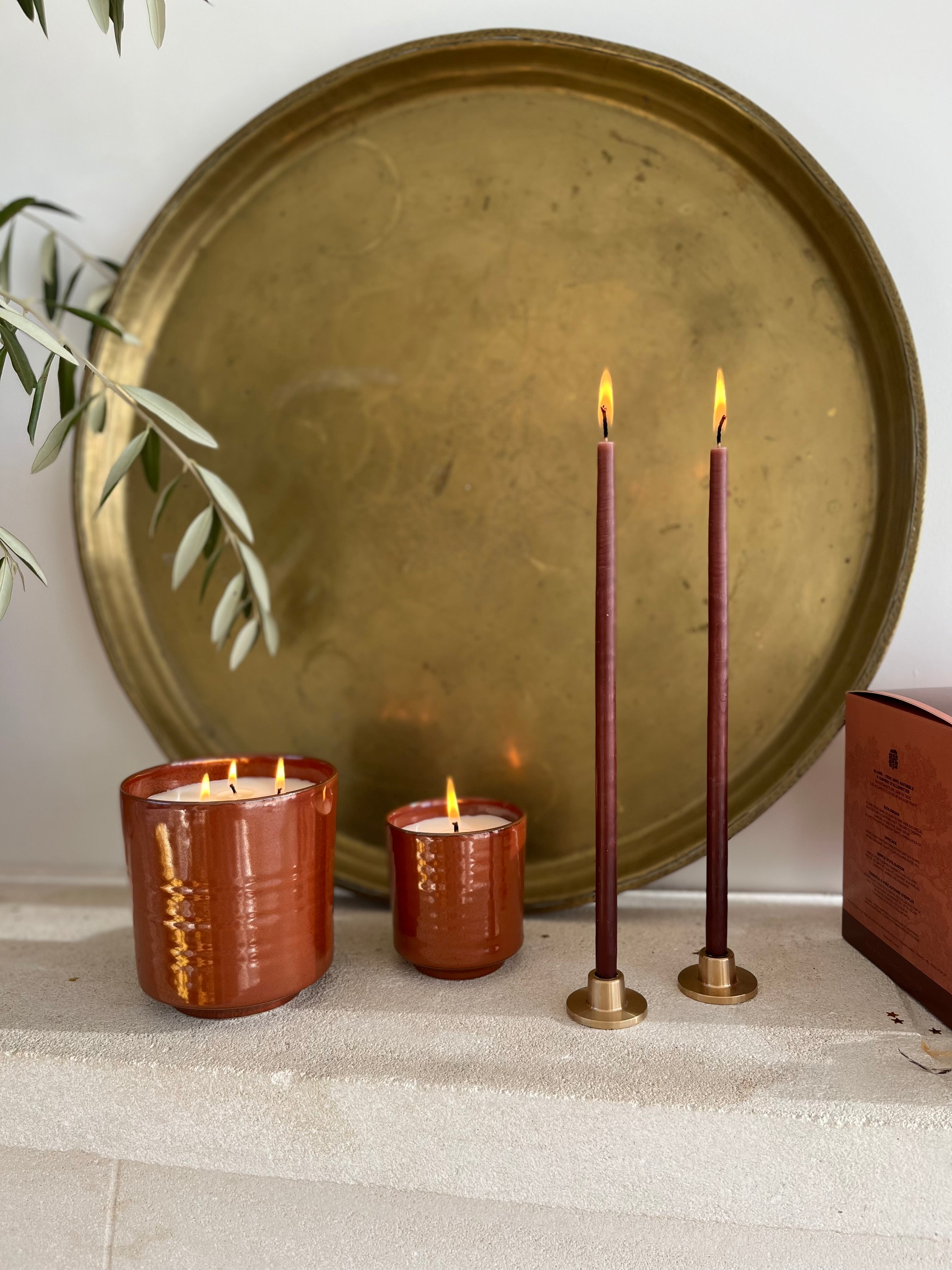 Associé aux bougies colorées fabriquées par la dernière ciergerie de Provence, cet ensemble permet de créer une ambiance élégante et d'illuminer votre maison de façon responsable et durable.