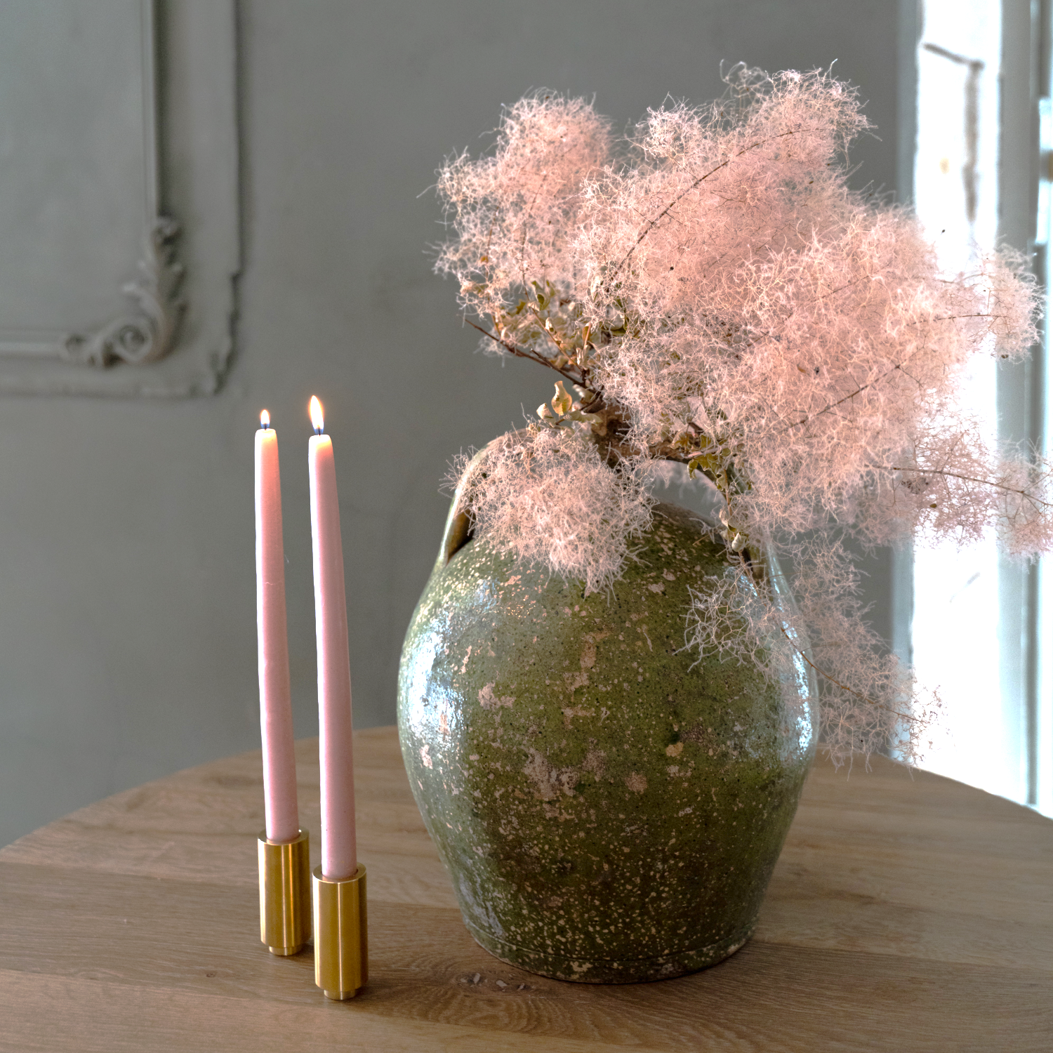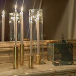 Il décore également avec élégance un manteau de cheminée. Des bougies allumées associées au doré étincelant du laiton, deux éléments afin d'illuminer vos soirées. La lumière douce de la flamme d'une bougie a toujours été essentielle afin de créer une ambiance "romantique".