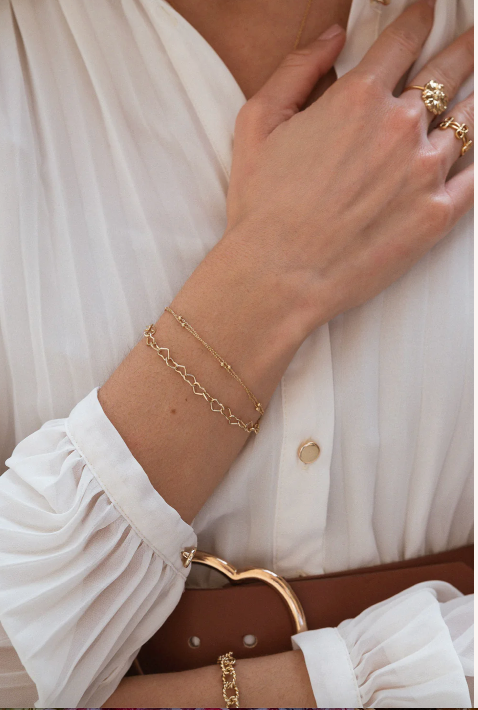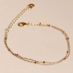 Bracelet composé d'une double chaine avec des petites billes délicates. Un effet deux en un parfait, qui va a avec tout, dans toutes les saisons.