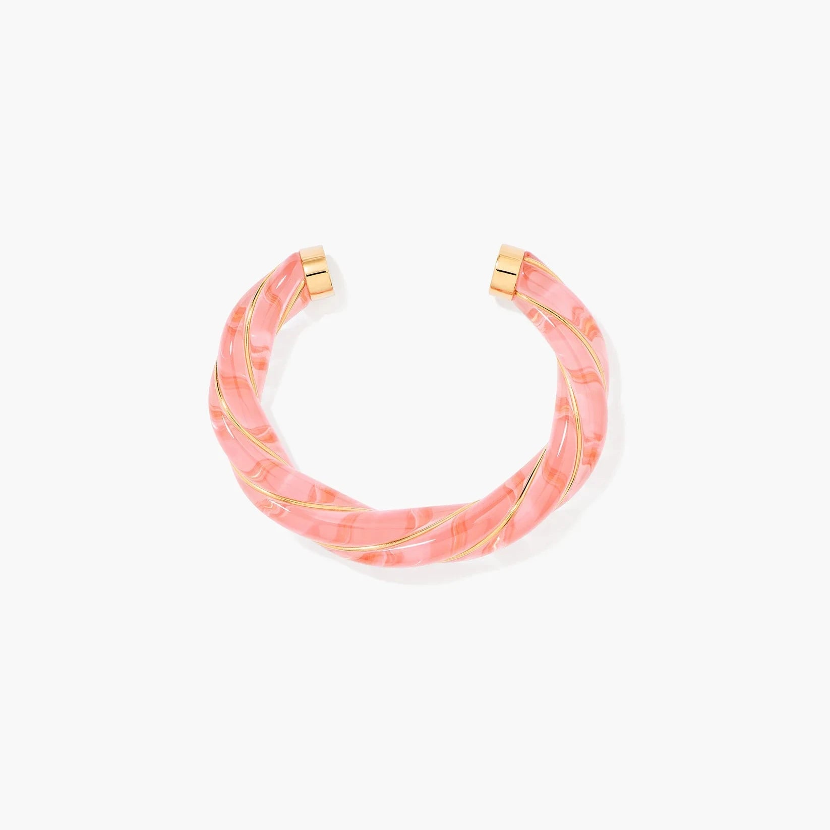 Jonc Diana torsadé en résine translucide rose, doré à l'or jaune 750/1000.