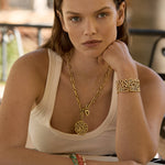 Inspiré des torques hippies des années 60, ce jonc est parcouru d’un fil d’or qui se fait liane ou glycine.