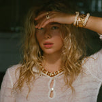 Jonc Positano à rayures ivoire en résine et doré à l'or jaune 750/1000.