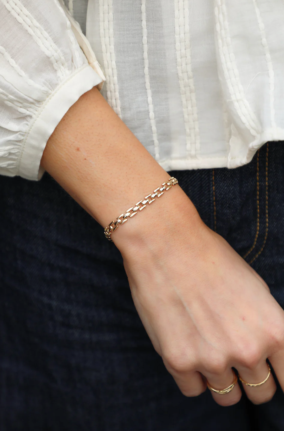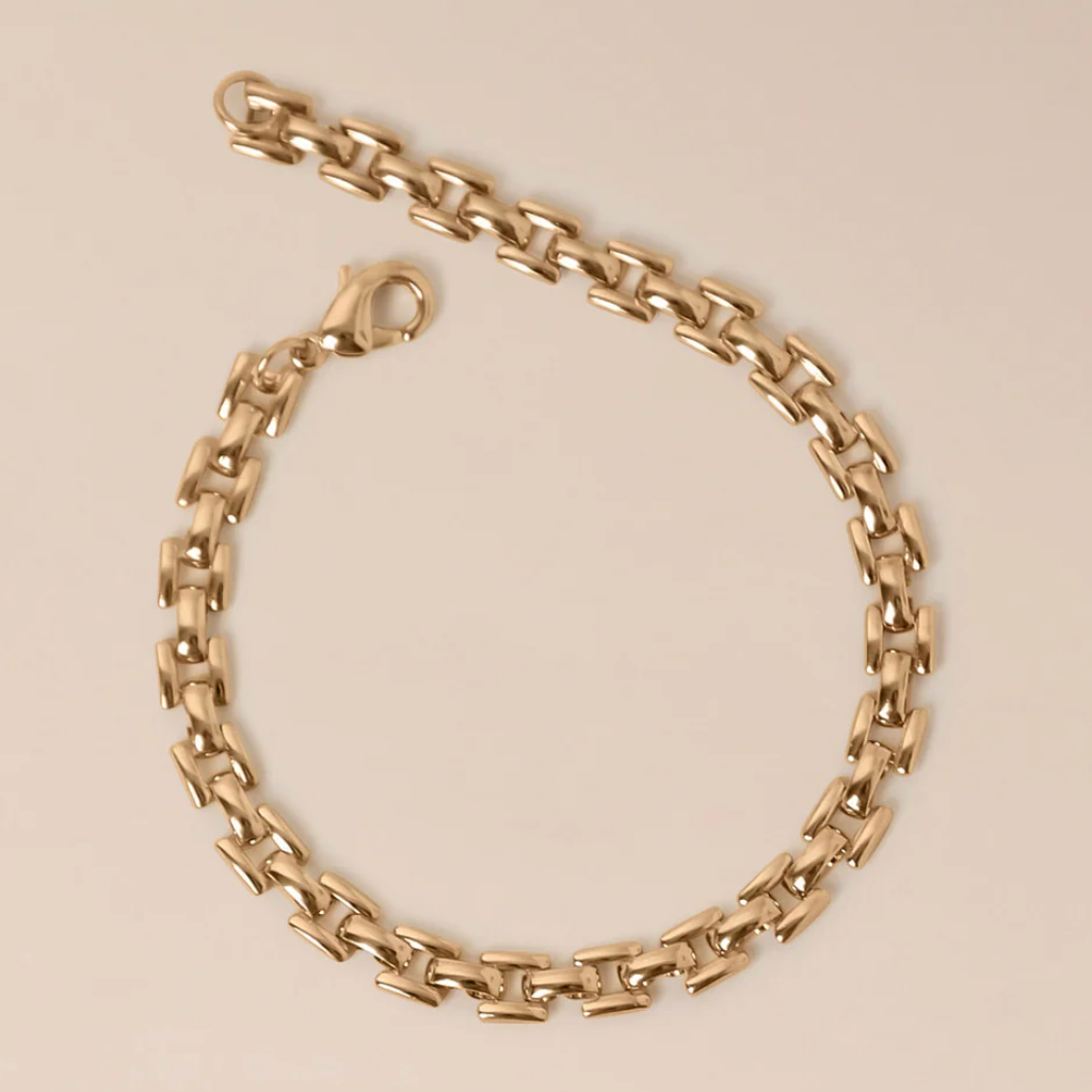 Découvre notre bracelet Tiago et sa maille géométrique. Un modèle classique à porter tous les jours. Le favoris de sa fondatrice, Mélissa !