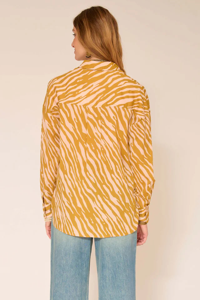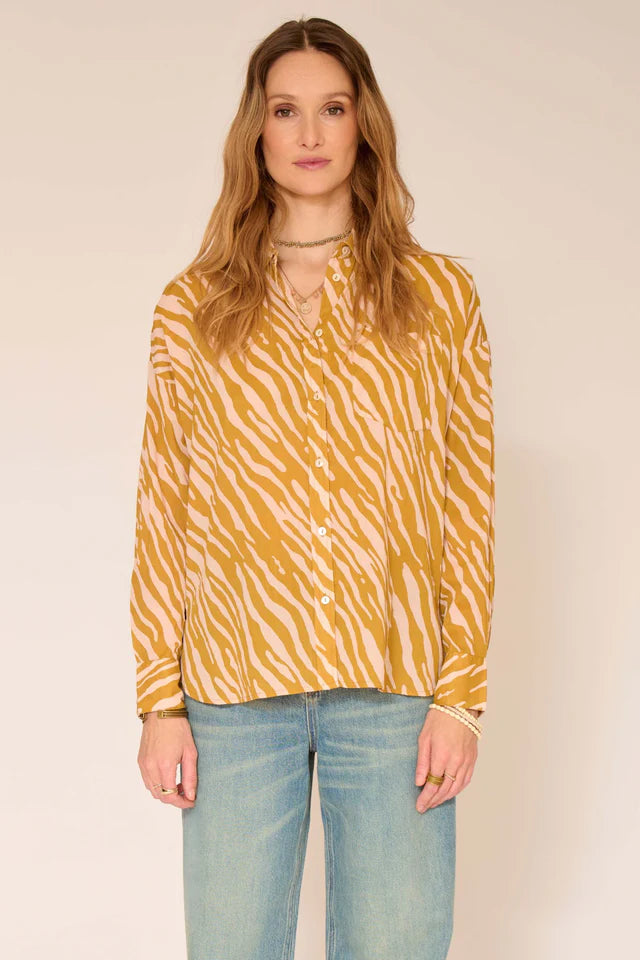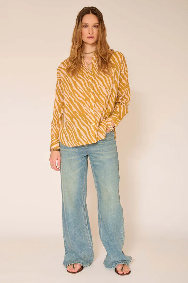 La chemise CALI en imprimé zèbre apporte une touche audacieuse à votre garde-robe. Avec son motif distinctif et sa coupe moderne, elle est idéale pour un look tendance et plein de caractère.