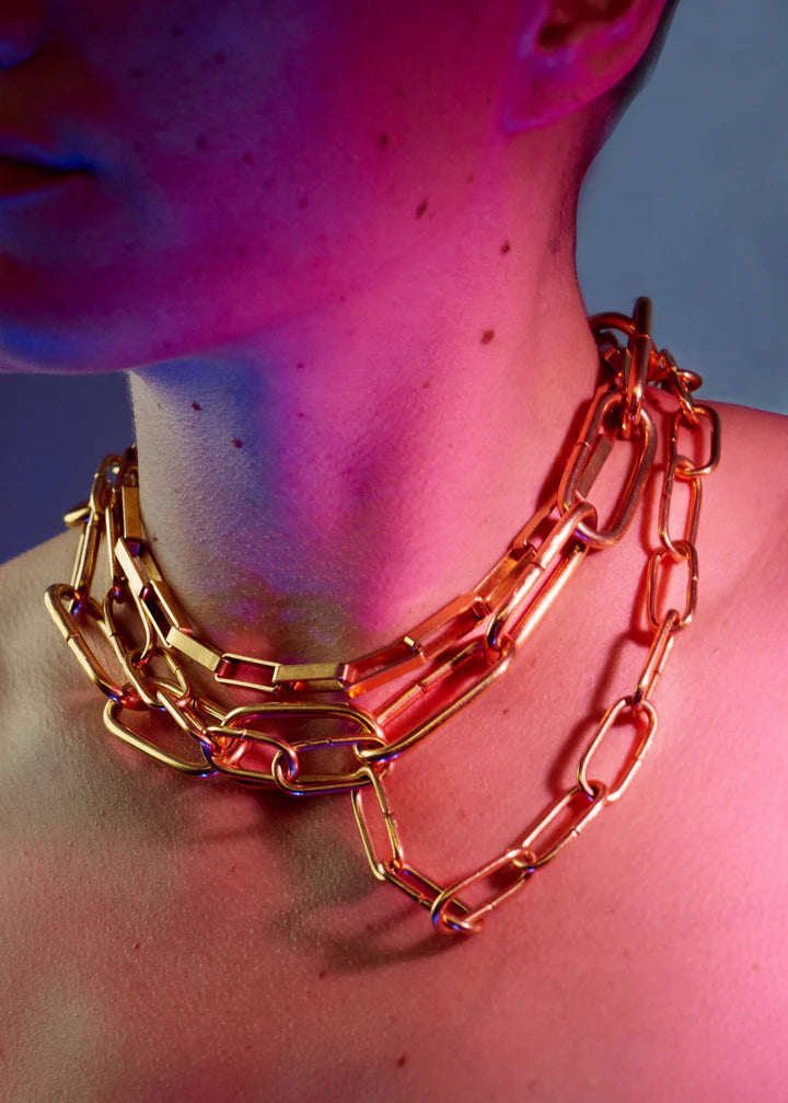 Les traces noires sur les maillons sont une patine faite à la main, afin de donner un aspect vintage. Les maillons peuvent être nettoyer à l'aide d'un chiffon doux. Évitez tout contact avec des produits cosmétiques et l'eau.