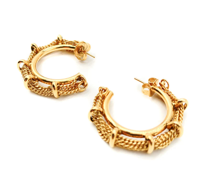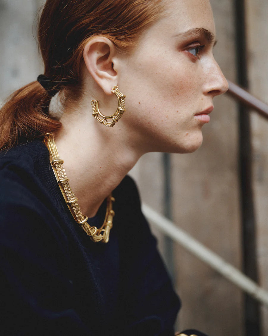 Créoles en laiton dorées légèrement patinées. Conçu à la main dans notre atelier parisien.