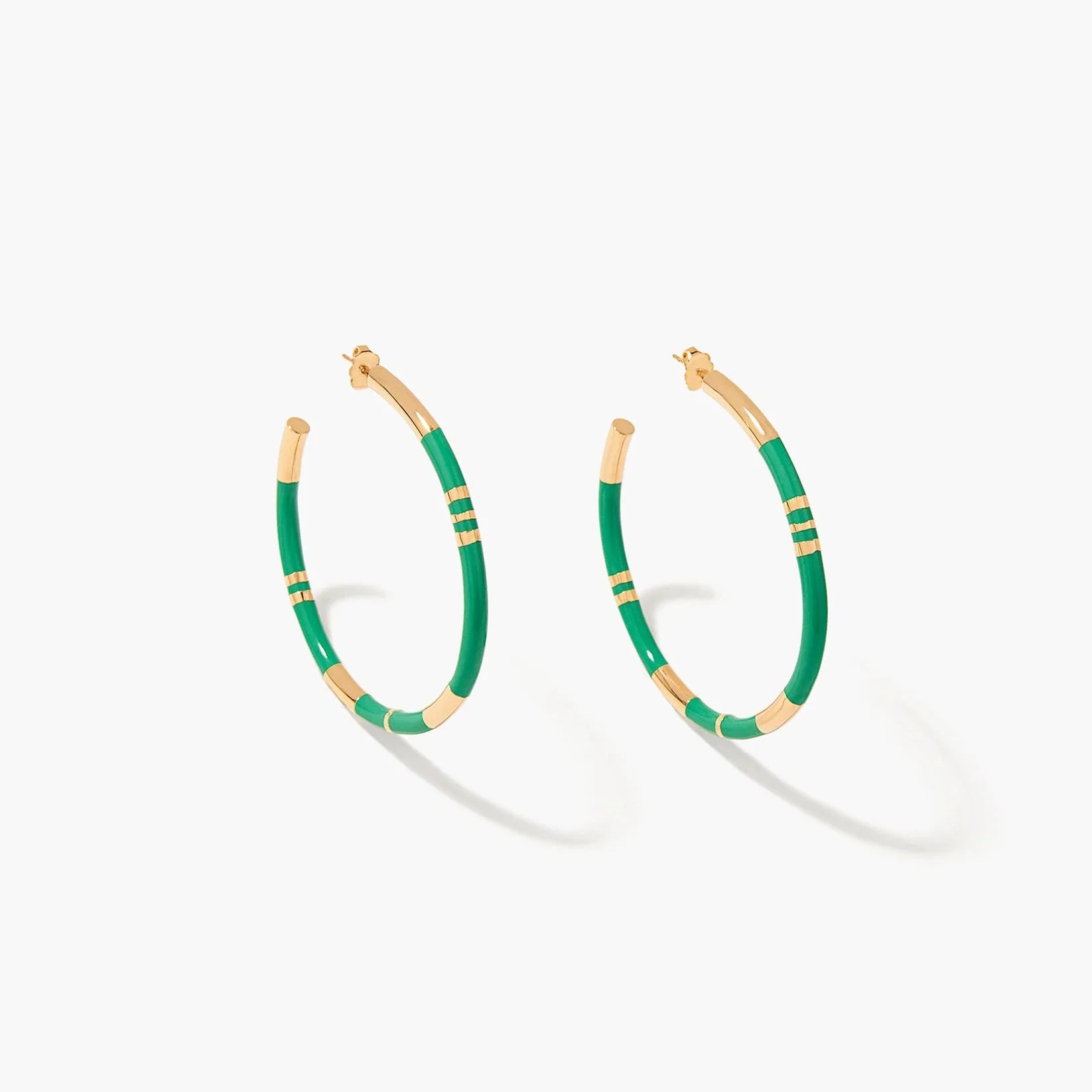 Créoles Positano à rayures coloris ivoire en résine et dorées à l'or jaune 750/1000.