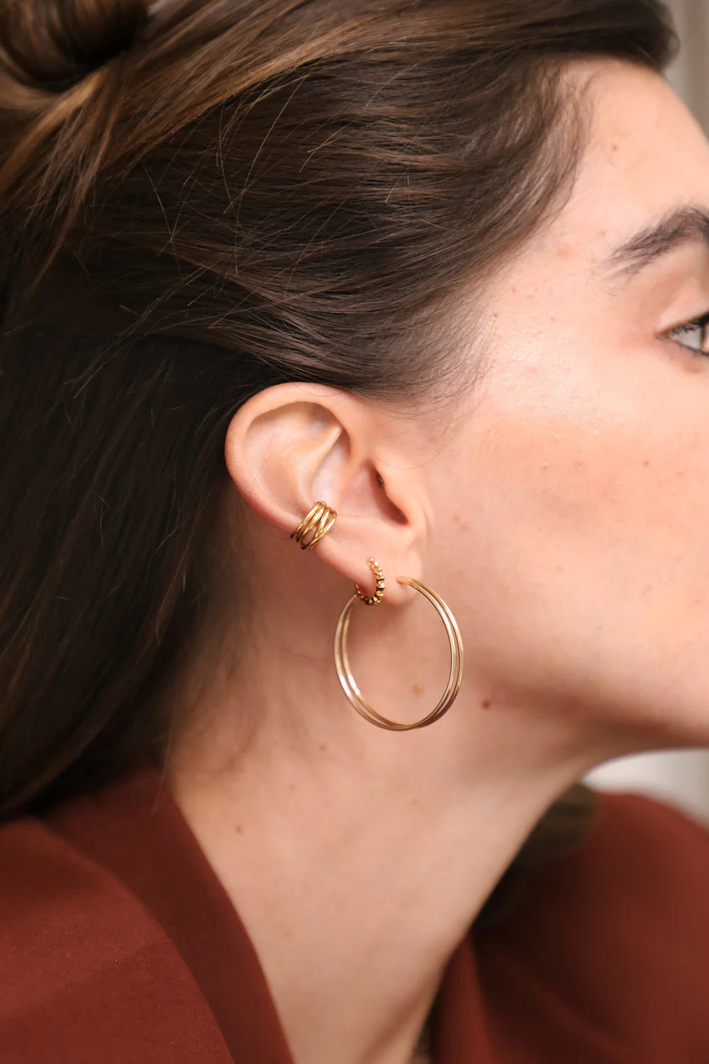 Inspirée de notre bague, une earcuff dorée intemporelle, à glisser sur l’oreille sans piercing.