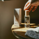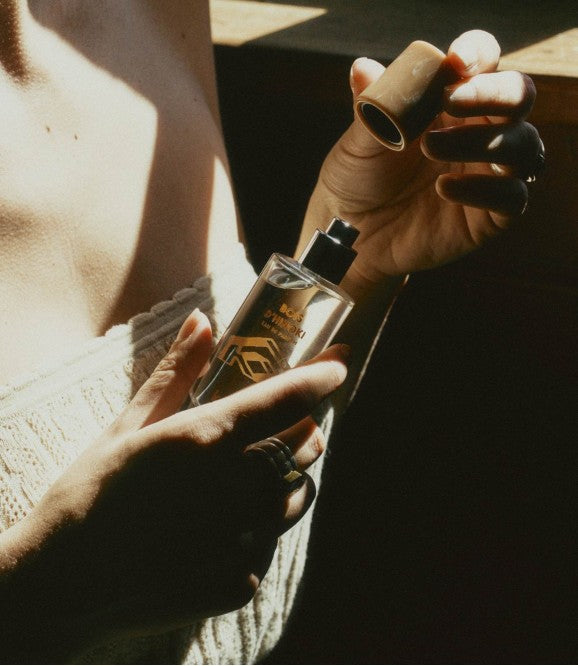 Les notes aromatiques de romarin se mêlent en tête aux accents camphrés de l’eucalyptus, dans une vivacité tonique, presque piquante. La chaleur épicée de la Cannelle se noue aux bois fumés de Cèdres millénaires, tandis que le bois de papyrus et le poivre noir prolongent un sillage résolument raffiné, qui dure sur la peau.