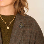 Ce manteau se distingue également par ses détails raffinés, comme un pin's décoratif sur le revers, qui ajoute une touche personnelle et originale à votre look. Il peut être facilement associé à divers styles, que ce soit pour un look décontracté ou plus habillé.
