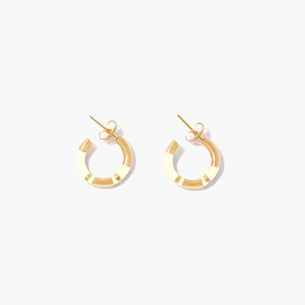 Mini créoles Positano à rayures ivoire en résine et dorées à l'or jaune 750/1000.