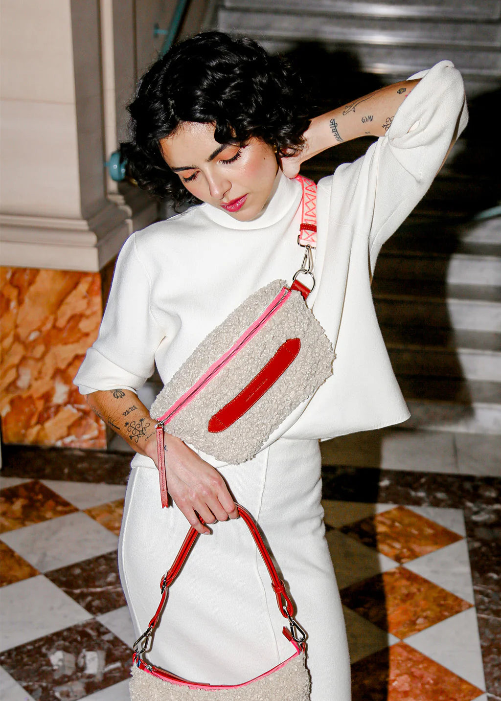 La mythique Coachella de Marie Martens en grand format ! Streetchic et résolument féminine, cette version XL du sac banane permet de porter en toute liberté l'ensemble de ses essentiels: lunettes, portefeuille, clés, téléphone... Vous allez vite craquer pour ce format indispensable conçu pour être porté à la taille et en croisé à l'épaule, grâce à sa bandoulière ajustable et amovible.