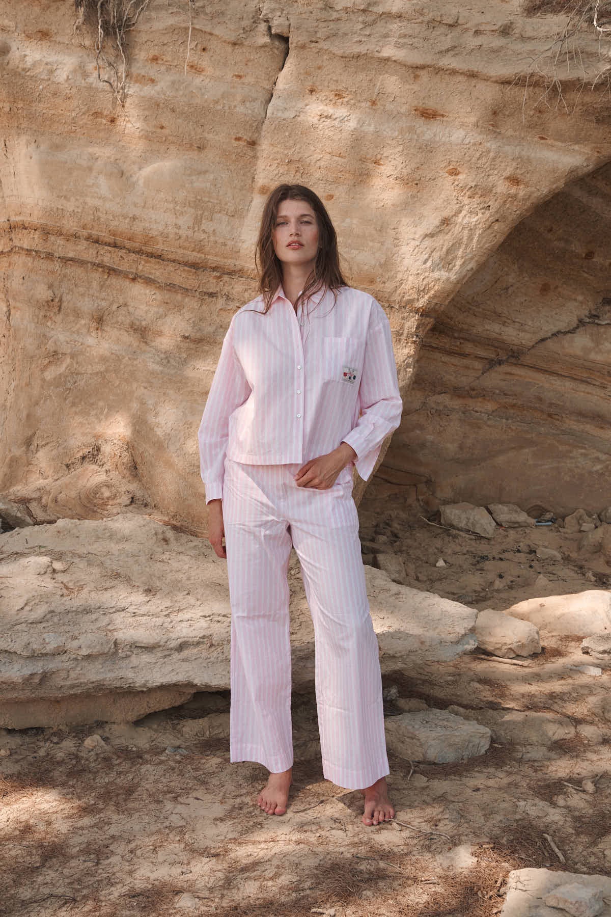 Le conseil style : portez Eden comme un bas de pyjama avec la chemise Pio assortie ou bien comme tenue décontractée pour sortir