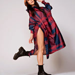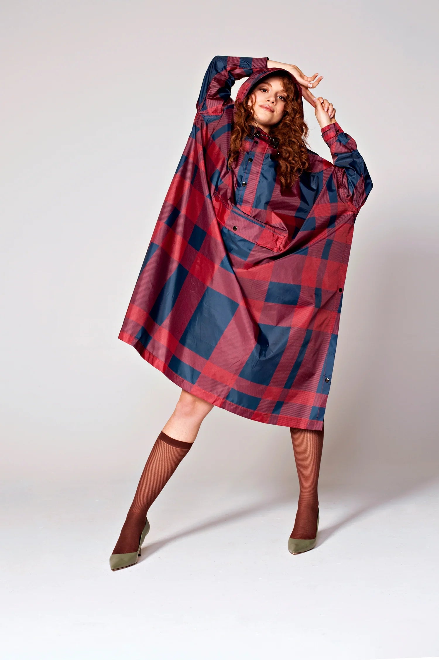 Poncho de pluie Rainkiss avec capuche ajustable et boutons sur les côtés.