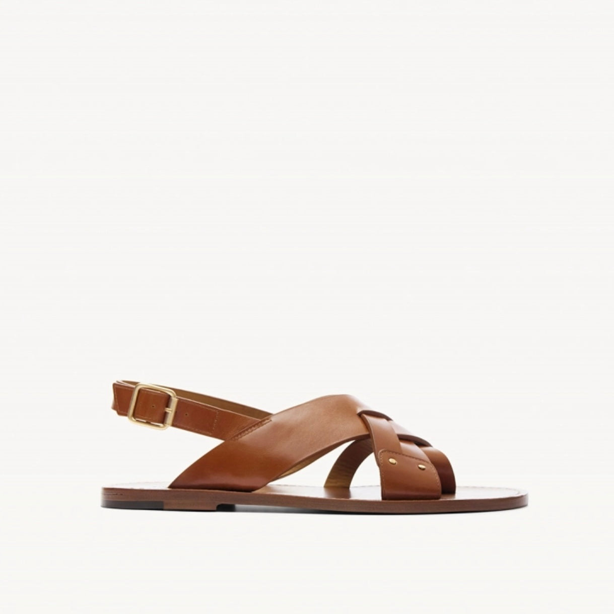 Rivecour agrandit sa collection de sandales plates avec le numéro 204. Un style davantage décontracté, mais pas moins raffiné. Ses larges brides croisées sur le cou-de-pied, ses rivets en or vieilli mat et ses piqûres contrastées en trépointe lui confèrent un style brut, authentique et traditionnel. Elle dispose d’une petite bride à l’entre-doigt pour assurer maintien et style.
