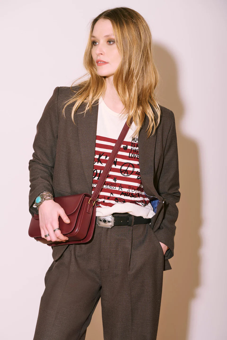 Ce tee-shirt se distingue par sa coupe légèrement ajustée, qui met en valeur la silhouette tout en offrant une liberté de mouvement. Il est parfait pour être porté seul ou sous une veste pour un style superposé.
