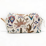 Trousse de toilette en tissu jacquard brodé suffisamment grande pour contenir tout votre nécessaire de toilette pour courts ou longs séjours.
