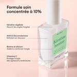 Hautement concentrée en kératine végétale, silicium et biotine, cette formule bio-mimétique booste la production de kératine et redensifiela plaque de l'ongle.